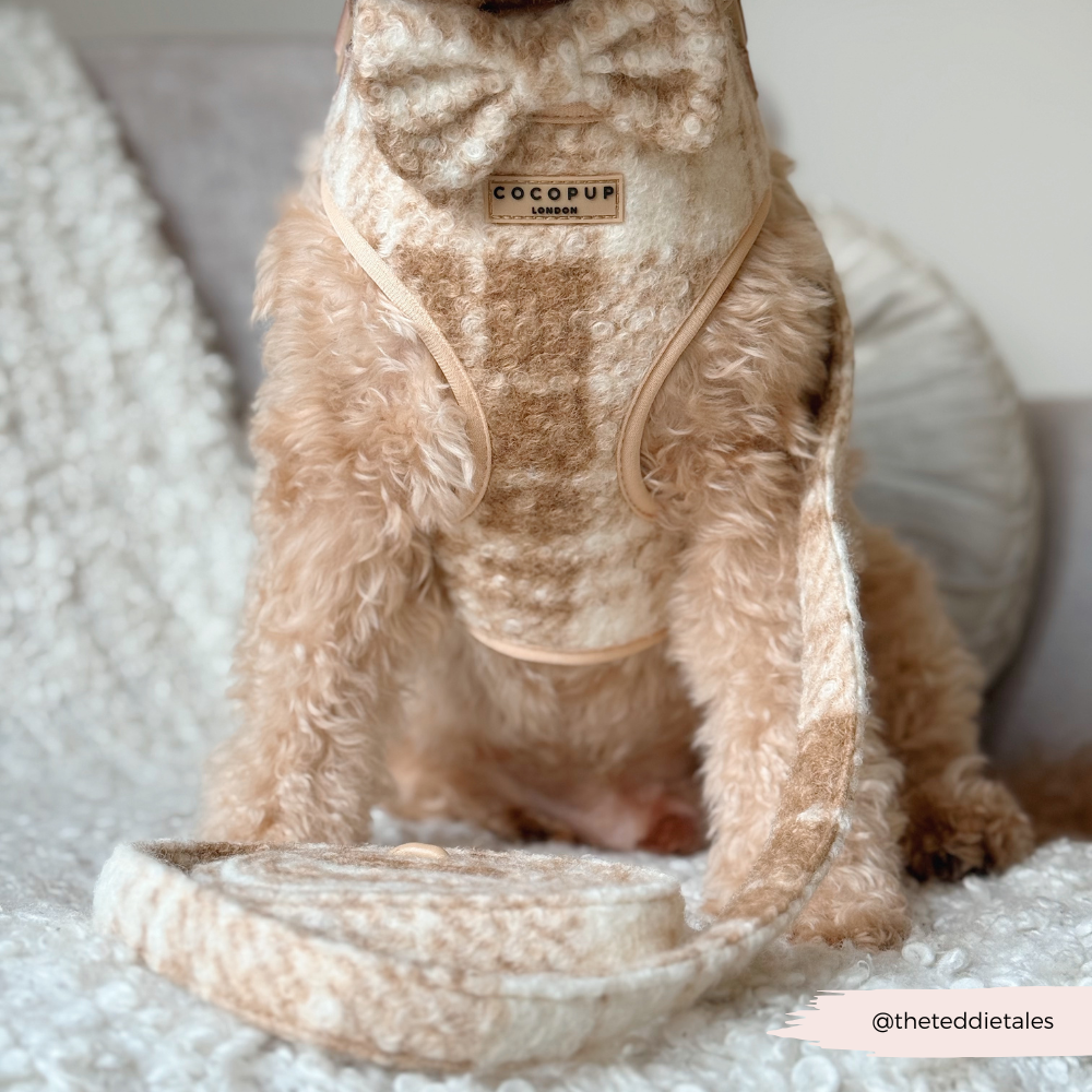 Highland Fleece Adjustable Neck Harness, Lead & Collar Bundle - Oatmeal