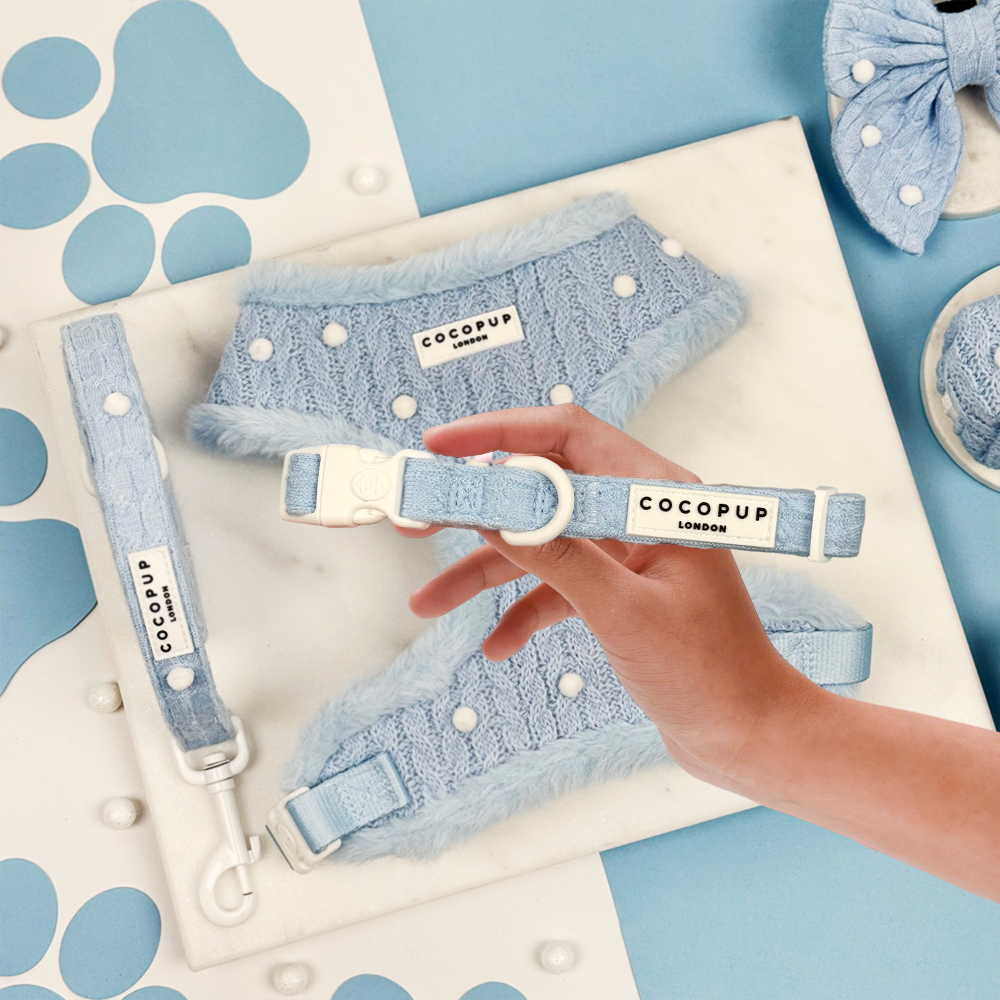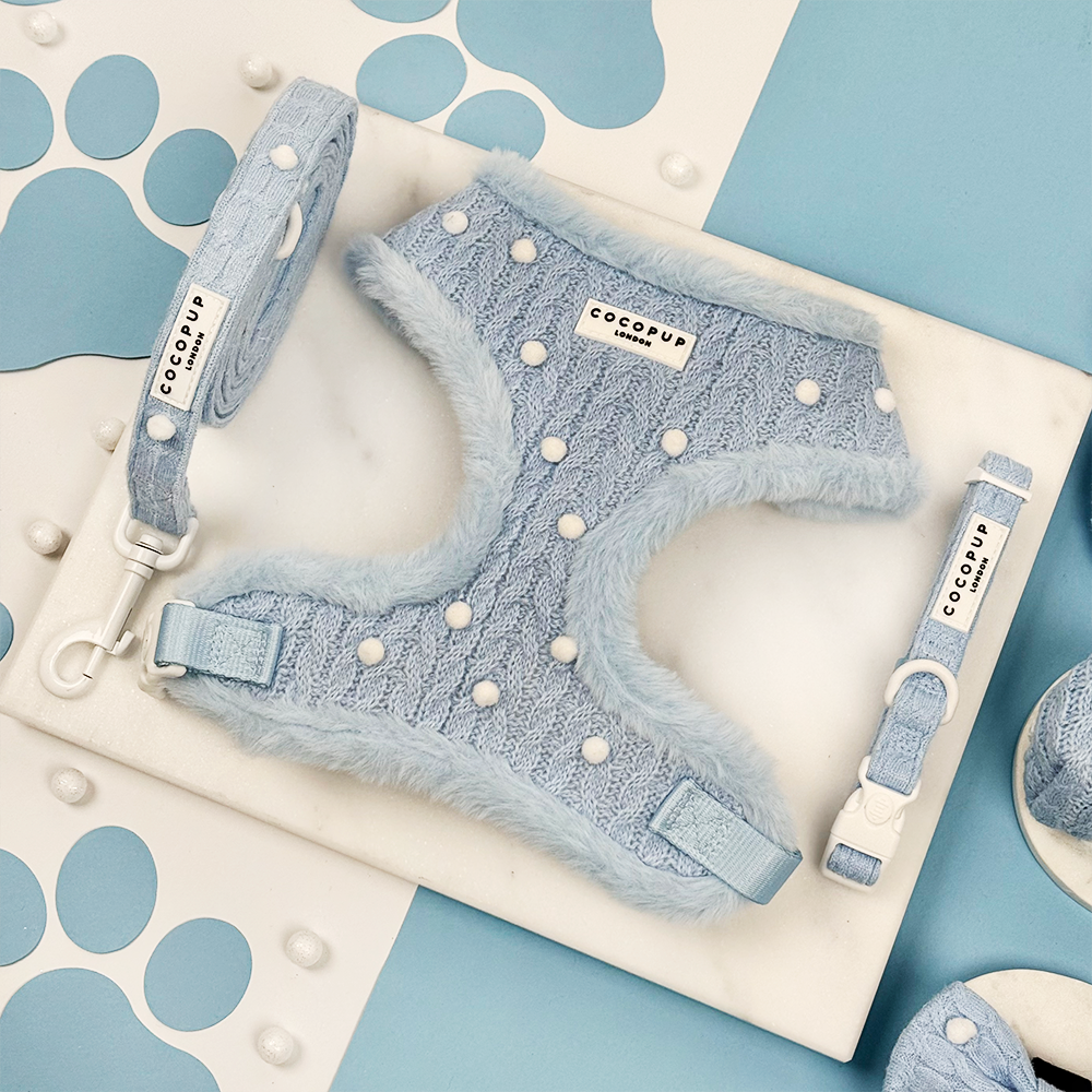 Introducing our Snowpaws Adjustable Neck Harness, Lead & Collar Bundle - the perfect set for your pup's daily walk this winter! Made from soft cable knit, this bundle includes an adjustable neck harness, lead, and collar, the harness features super cute snowball pom poms. Time for some pawsome adventures!