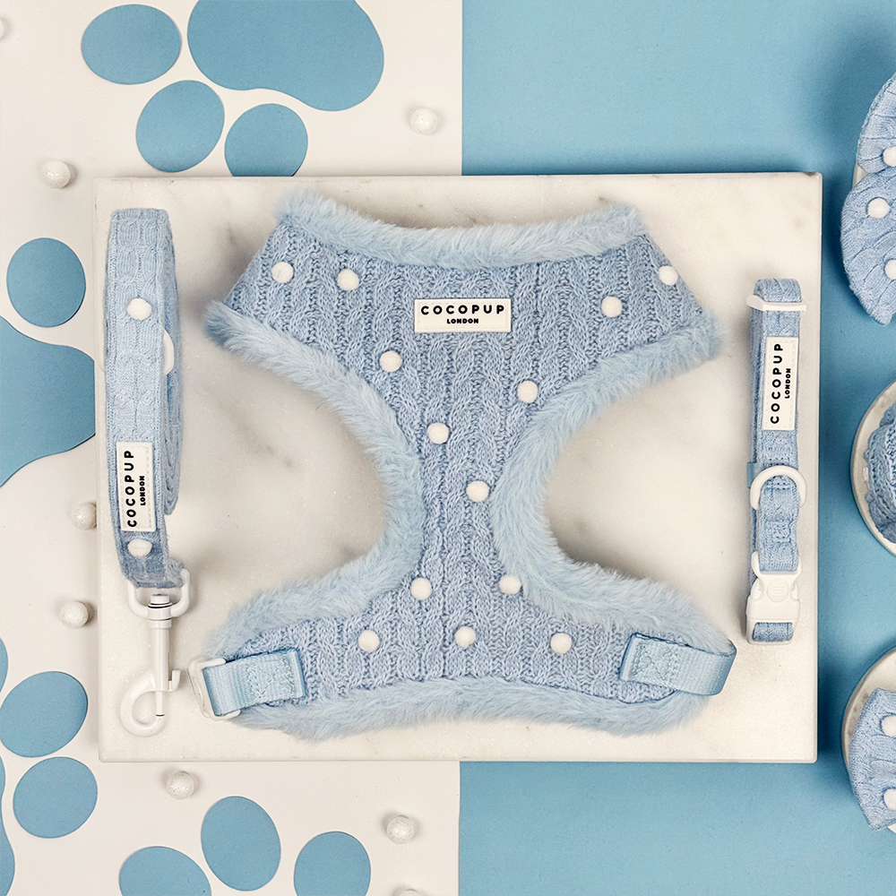 Hot Coco Cable Knit Adjustable Neck Harness, Lead & Collar Bundle