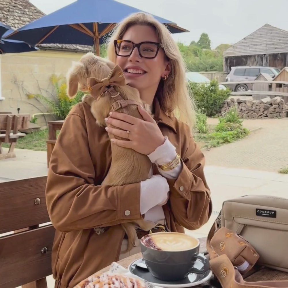 Take your dog for a walk in style with this Bundle featuring the Dog Walking Caramel Latte Bag and Pawtisserie Bag Strap.