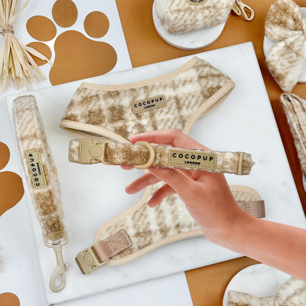 Ready for countryside adventures? This delightful Highland Fleece bundle brings timeless style to every dog walk. The charming nude and cream checked pattern never goes out of fashion, the safety lock buckles on the harness and collar mean your furry friend stays secure and snug. Perfect for pups who love exploring and owners who love peace of mind!