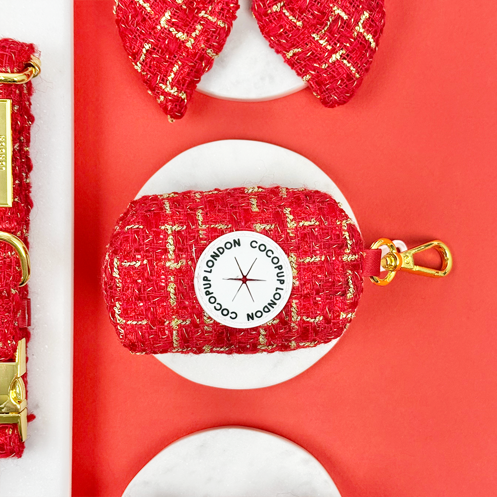 Red Textured Tweed Dog Walking Bag Bundle - Red Textured Tweed