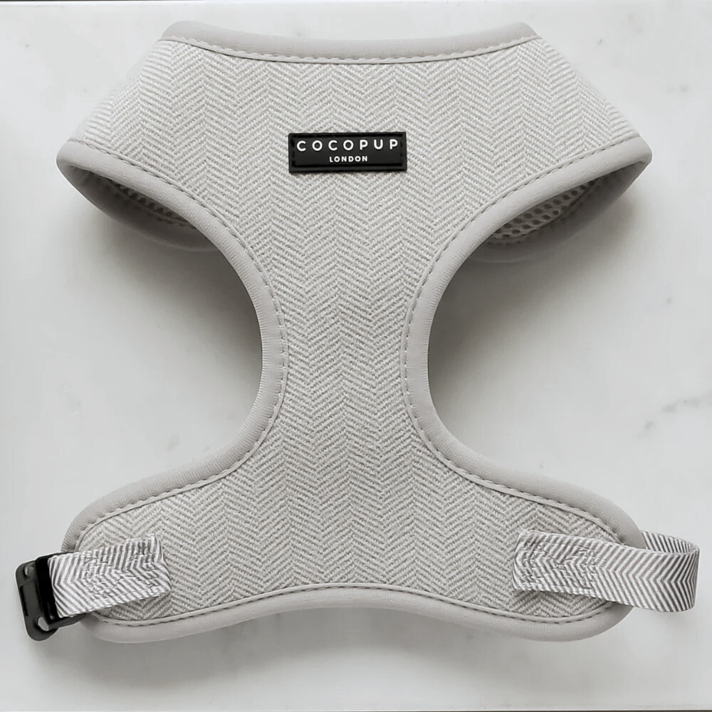 Take your furry friend on a stylish stroll with our Grey Tweed Adjustable Neck Harness! The herringbone pattern adds a touch of sophistication to any country-style outing, while the soft material ensures comfort for your pup. Perfect for a leisurely dog walk (or puppy parade)!