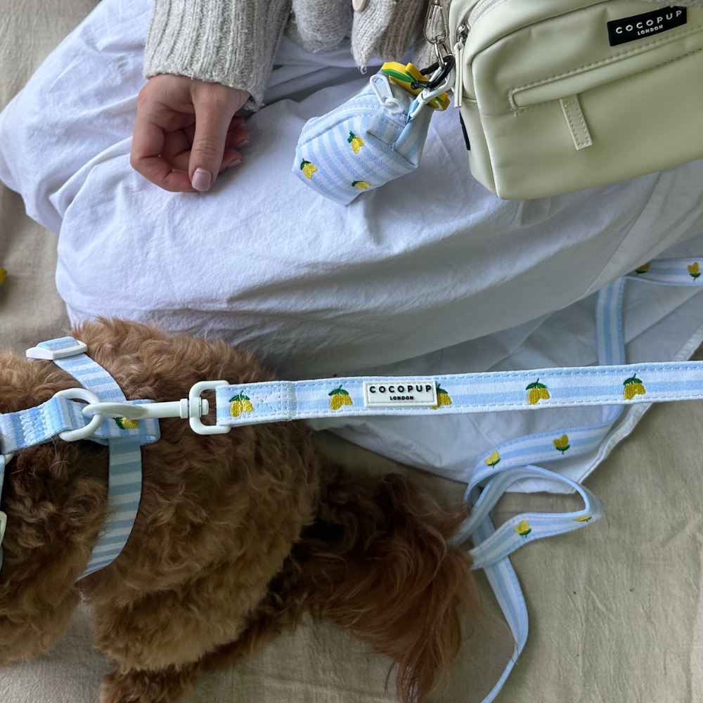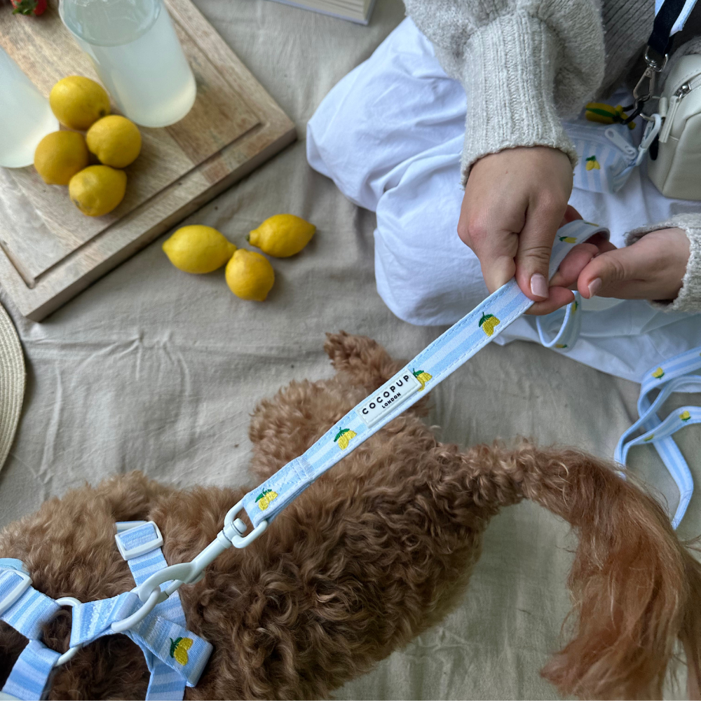 Make every dog walk feel like a summer escape with our Living La Vida Lemon Lead. Featuring blue and white stripes and embroidered lemons, this lead is both stylish and playful. Enjoy the walk of your dog's dreams!