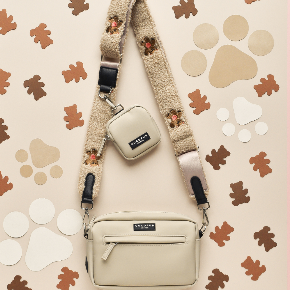 Our Bag Bundle includes: Bag, Treat Pouch & Theo Embroidered Teddy Bag Strap